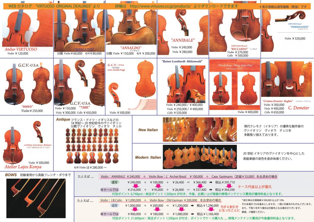 随分と秋も深まり、師走ももう間近。歳末に向けて、クリスマス&歳末セールを開催いたします。例年、この時期に楽器をご検討される方も多いことから、謝恩還元セールとしての開催となりますので、価格が通常よりもお得になる設定をご用意いたします。楽器、弓を一堂にご覧いただく機会として、名古屋駅前店:12月15〜17日、京都四条烏丸店:12月22〜24日 をセール開催日としておりますが、すでに店舗では、年末まで同様の料金でご提案できるよう、対応させていただいております。どうぞこの機会にお求めください。