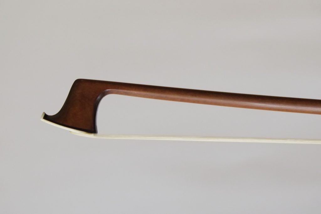 もちろんこちらに合わせる弓も、自由に選択ができます。ご予算に合わせて通常20,000円からでもご用意できますが、もし余裕がおありでしたら、長く使える材質の良いものをおすすめしています。初心者の方でも10万円前後のもの以上を手にしていただきたいというのが正直なところですが、かりに5万円以内ということであっても、できるだけその中で楽器に合うものを選別していただけるようにサジェッションさせていただきます。