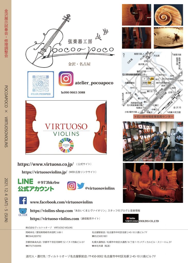 当日は修理や毛替え、メンテナンス、音調整をポコアポコさんで承ります。