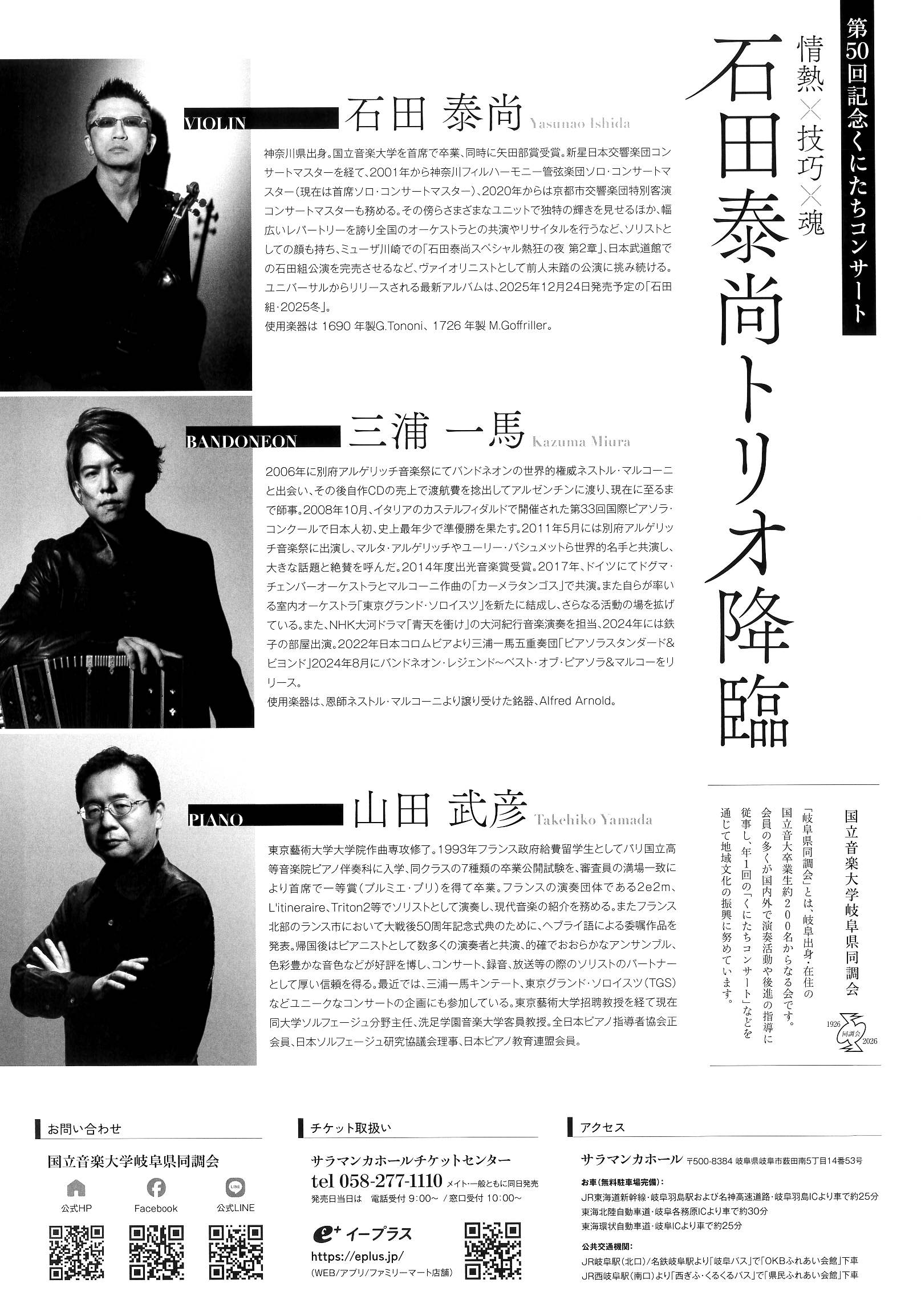 第50回記念くにたちコンサート 石田泰尚トリオ降臨